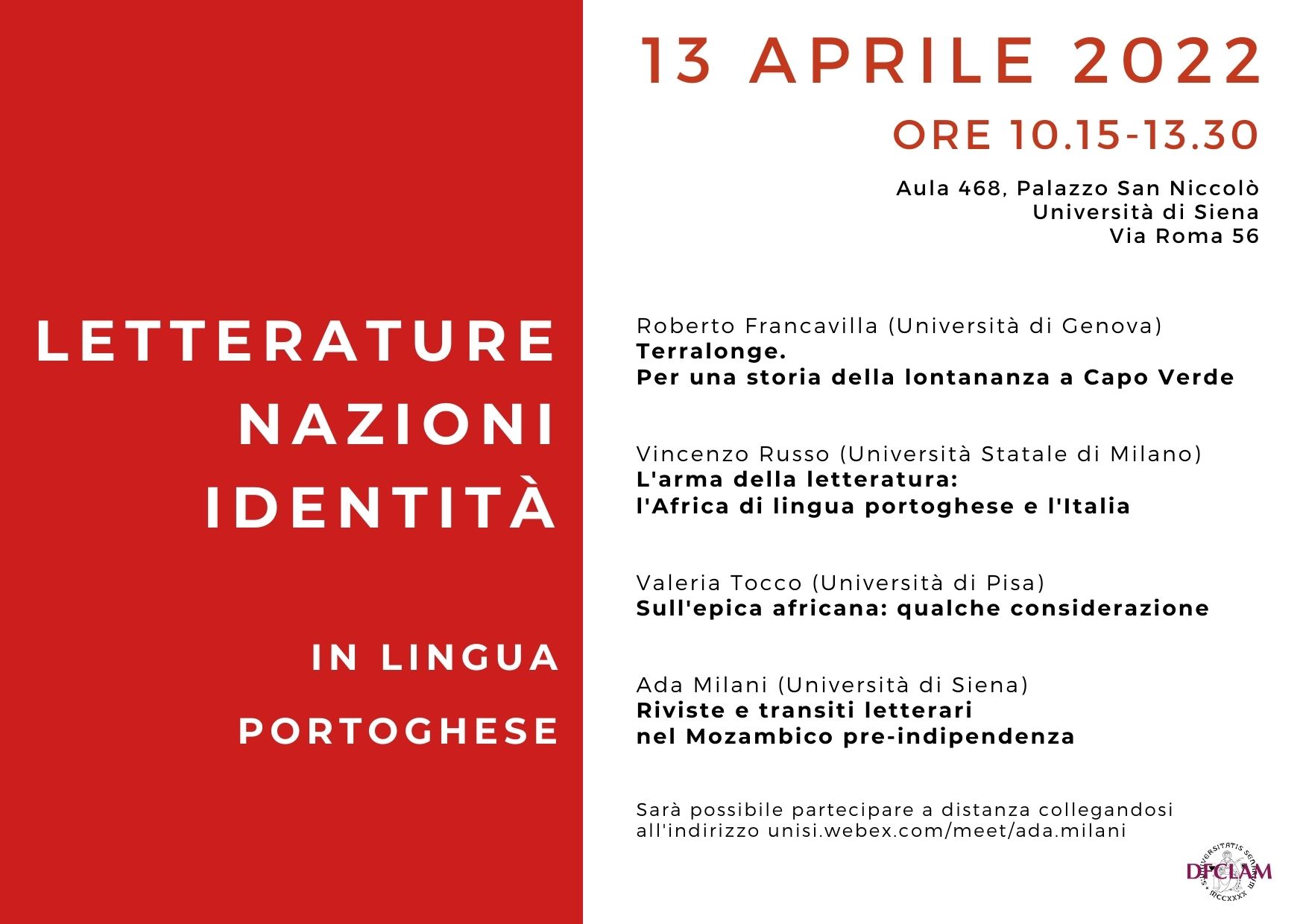 Stanza virtuale: unisi.webex.com/meet/eventi.