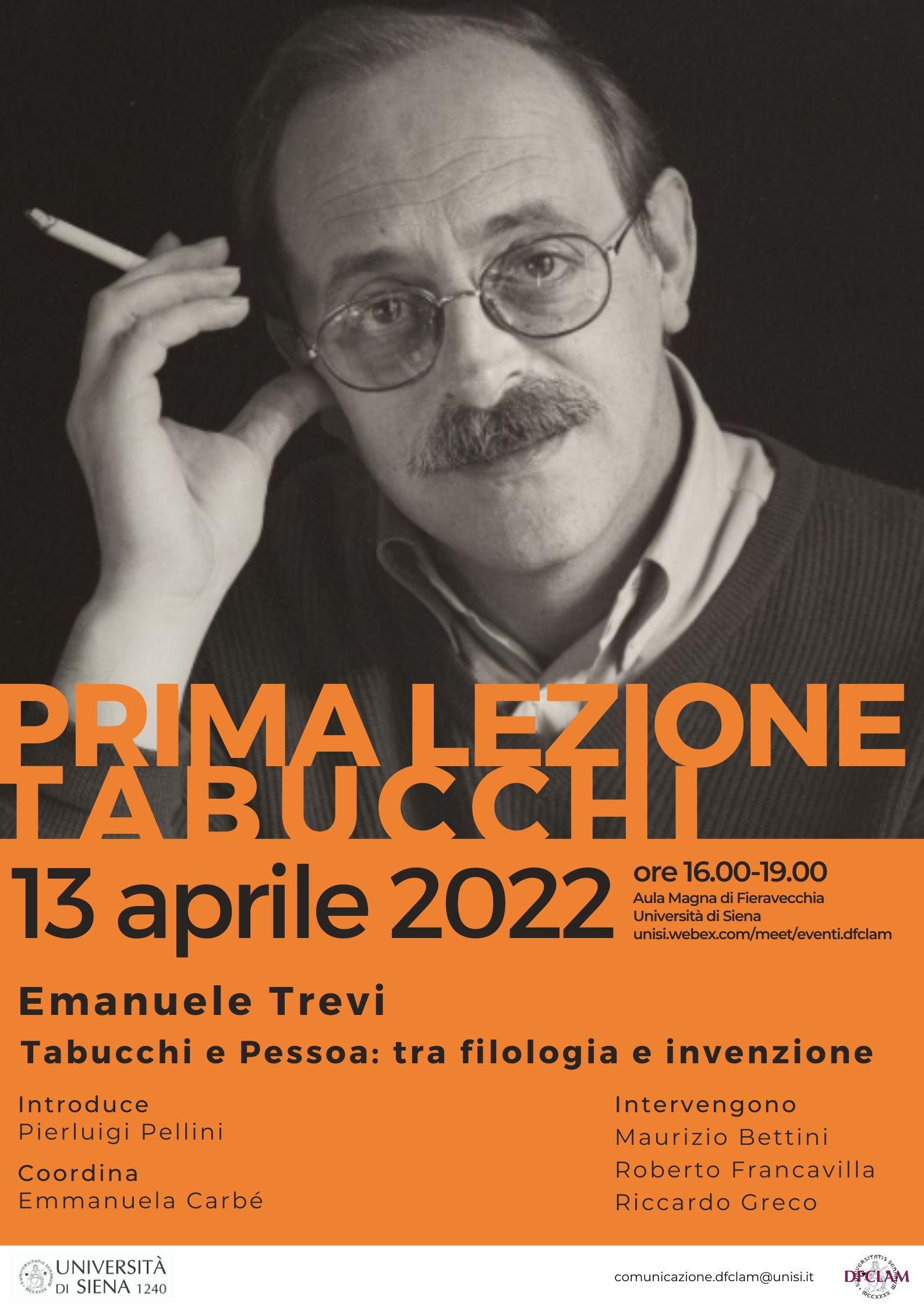 Il 25 marzo 2012 moriva Antonio Tabucchi, che è stato professore all’Università di Siena. A dieci anni dalla sua scomparsa il Dipartimento di Filologia e critica organizza una giornata per ricordarlo, con un seminario, un ricordo da parte di colleghi e amici, e con l’avvio di una serie di lezioni a cadenza annuale. La “Prima lezione Tabucchi“ sarà tenuta da Emanuele Trevi