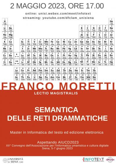 2 maggio 2023, ore 17:00 - Lectio magistralis con Franco Moretti "Semantica delle reti drammatiche"