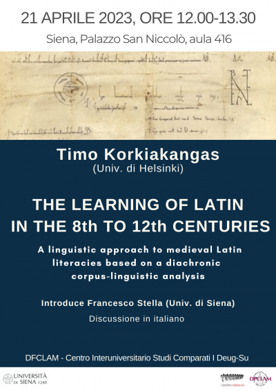 Venerdì, 21 aprile 2023, ore 12:00 Timo Korkiakangas (Univ. di Helsinki) terrà un seminario di studi dal titolo