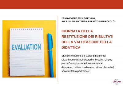 Mercoledì, 22 novembre 2023, dalle ore 14.00 si svolgerà, in modalità mista, la "Giornata della restituzione dei risultati della valutazione della didattica, a.a. 2022-2023".