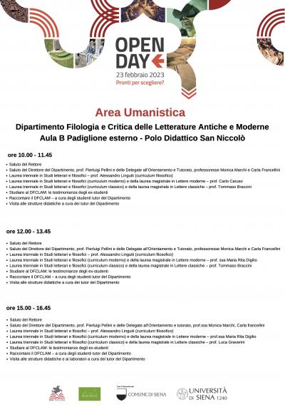 Programma Open day 23 febbraio 2023 – DFCLAM (sede di Siena)