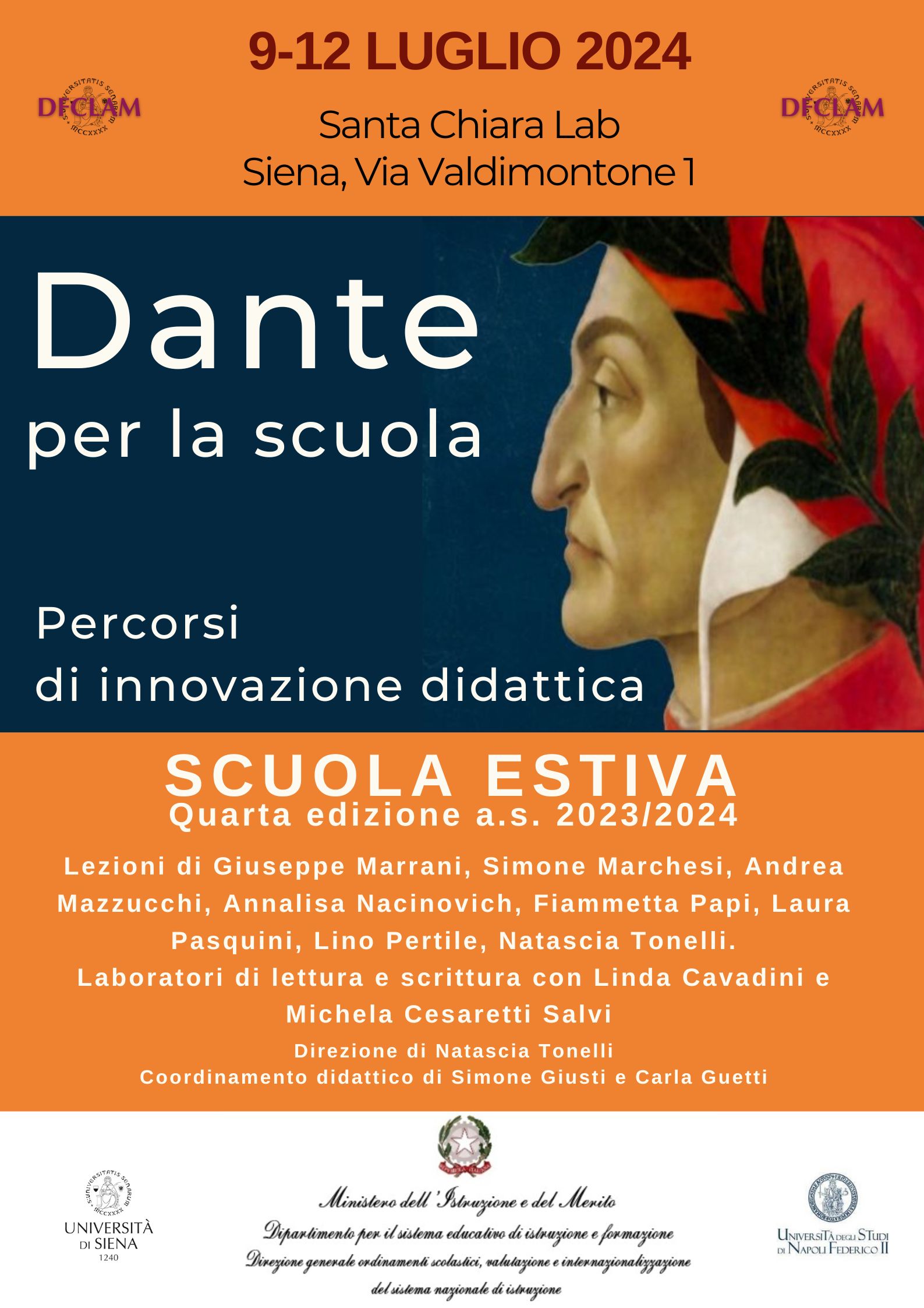 Martedì 9 luglio alle ore 15.00 prenderà il via la quarta edizione della scuola estiva "Dante per la scuola - Percorsi di innovazione didattica", che ospiterà docenti di scuola secondaria provenienti da tutta Italia.