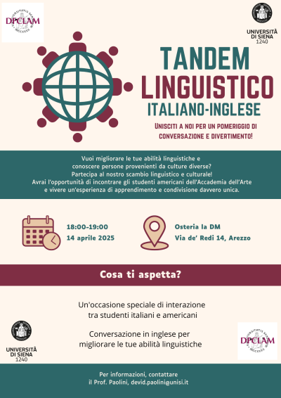 Arezzo, 14 aprile 2025, ore 18.00 - Tandem Linguistico (Language exchange): italiano-inglese