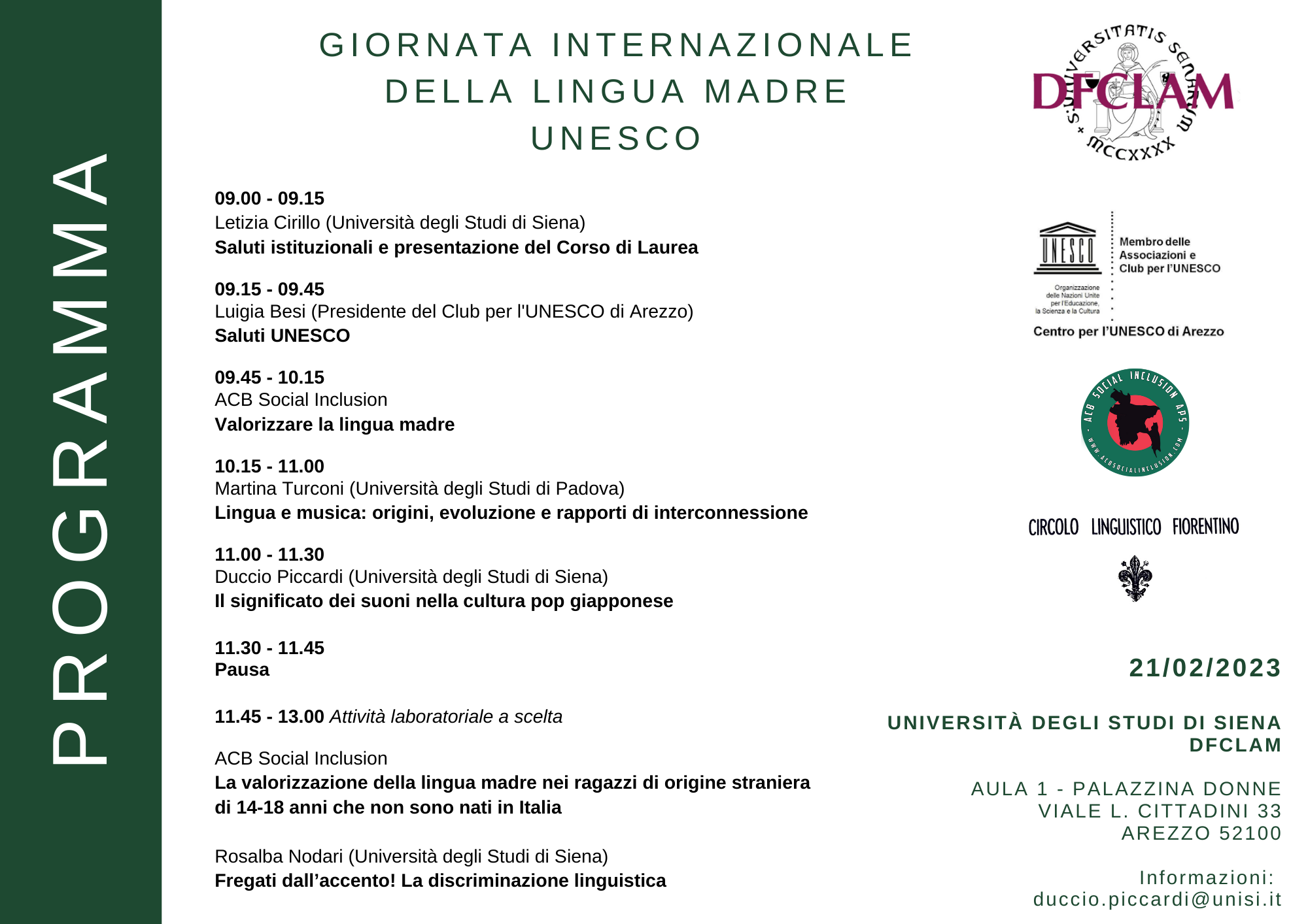 Come da tradizione, il Corso di Laurea in Lingue per la Comunicazione Interculturale e d'Impresa celebra presso il campus aretino dell'Ateneo la Giornata Internazionale della Lingua Madre UNESCO con una mattinata di interventi, presentazioni e laboratori dedicati alle scuole superiori di secondo grado e a tutti i curiosi e gli appassionati di scienze del linguaggio.