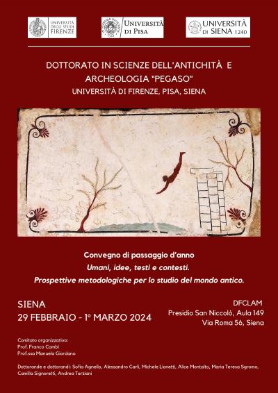 Dal 29 febbraio al 1 marzo 2024 nel l’ambito del dottorato in Scienze dell'antichità e Archeologia "Pegaso" (università di Firenze, Pisa, Siena) si terrà un Convegno di studi dal titolo: