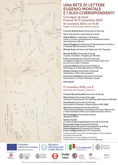 organizzato nell'ambito del Progetto PRIN 2022 "Lettere in rete: Eugenio Montale epistolografo (1915-1981). Studio e database", diretto dal Prof. Niccolò Scaffai (DFCLAM).