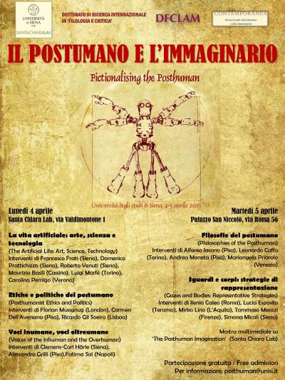 Il convegno è organizzato nell’ambito delle attività della scuola di dottorato in “Filologia e critica”. Nelle due giornate di studio ci concentreremo su come il postumano è stato ed è rappresentato/raccontato attraverso vari linguaggi e media. I 20 relatori (in parte studiosi invitati dal comitato scientifico, in parte selezionati attraverso un call for papers internazionale) sono specialisti di letteratura, filosofia, robotica, cinema, estetica contemporanea, storia della cultura. Il tentativo è quello di approdare a una possibile definizione del postumano, nelle sue implicazioni filosofiche e antropologiche, e a una valutazione del suo ruolo culturale, a partire dall’analisi delle sue manifestazioni nell’immaginario (innanzi tutto – ma non esclusivamente – narrativo), e della sua fenomenologia come oggetto del discorso.