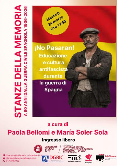 A novant’anni dallo scoppio della Guerra di Spagna (1936-1939), le ispaniste María Soler Sola e Paola Bellomi dialogheranno sul contributo dato per la salvaguardia della cultura e per la promozione dell’educazione anche durante il conflitto civile da parte degli uomini e delle donne della Seconda Repubblica. Al motto di “¡No pasarán!”, le forze antifasciste difesero i valori democratici creando associazioni come la Alianza de Intelectuales Antifascistas para la Defensa de la Cultura o la Junta de Incautación y Protección del Patrimonio Artístico. Oggi, come allora, è importante ricordare il valore dell’istruzione, della cultura e dell’arte come strumenti di libertà.