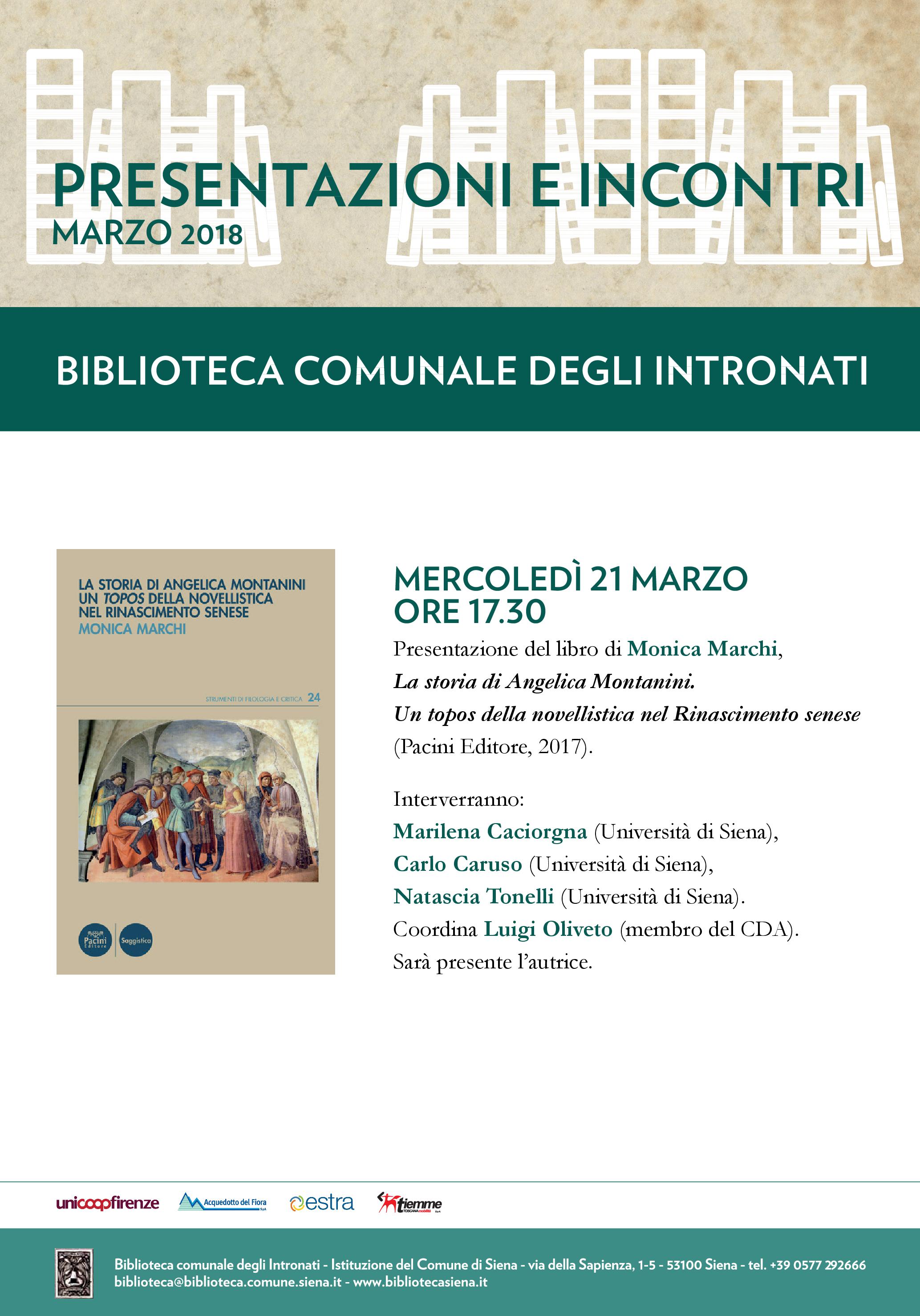 Presentazione del libro di Monica Marchi - ANGELICA MONTANINI. Un topos della novellistica nel Rinascimento senese - 21 marzo 2018, ore 17.30