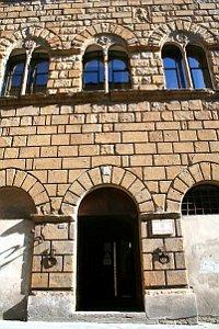 Dell’edificio quattrocentesco si conserva la facciata su via Roma, interamente realizzata, in forme parzialmente diverse da quelle enunciate, in bugnato liscio di arenaria, quale significativa testimonianza di adesione, nella Siena della seconda metà del secolo, allo stile nuovo del rinascimento fiorentino.
