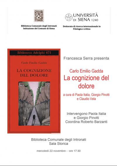 Si svolgerà mercoledì 22 novembre alle ore 17,30 presso la Biblioteca degli Intronati a Siena (Via della Sapienza)