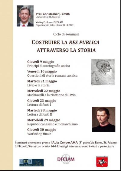 Gli otto seminari si concentreranno sul modo in cui la scrittura della storia può costruire la politica, riscrivere la memoria e fornire materiale per un futuro immaginato in modo nuovo. Partendo dal caso specifico della Roma arcaica, esamineremo la tradizione storiografica latina e useremo il confronto tra Livio e la lettura di Roma arcaica da parte di Machiavelli per esplorare cosa significa la creazione di una Res Publica. In generale rifletteremo intorno alle rappresentazioni materiali e visive del potere e dell'autorità. Un’attenta lettura di testi selezionati consentirà anche di porre questioni sul metodo comparativo.