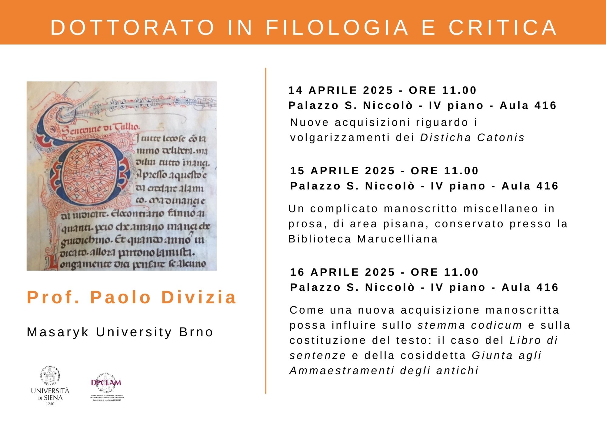 • Ricerca 50 crediti (di questi 50 crediti, 16 possono, a seconda della tipologia di tesi concordata, essere attribuiti per la frequenza a stage, presso il CNR-OVI, presso Mondadori Education, Pacini o Scribedit).